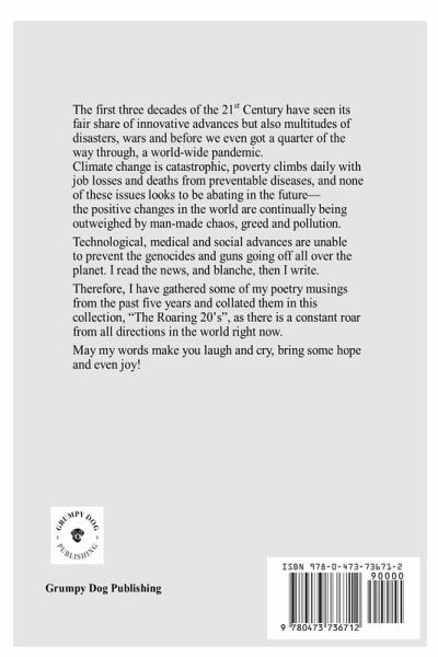 The first three decades of the 21st Century has seen it's fair share of innovative advances but also multitudes of disasters, wars and before we even got a quarter of the way through, a world-wide pandemic. Climate change is catastrophic, poverty climbs daily with the job losses and deaths from preventable diseases, and none of these issues looks to be abating in the future, with the positive changes in the world continually being outweighed by manmade chaos, greed and pollution. Technological, medical and social advances are unable to prevent the genocides and guns going off all over the planet. I read the news and blanche, then I write. Therefore, I have gathered some of my poetry musings from the past five years and collated them into volume 1, with a Volume 2 followoing at the end of the 2020's. Hopefully, by then world events will have improved and not worsened any more. I've called this collection, "The Roaring 20's" as there is a constant roar from all directions in the world right now. I hope my words soothe, bring hope and make you laugh, and cry, just a little bit.