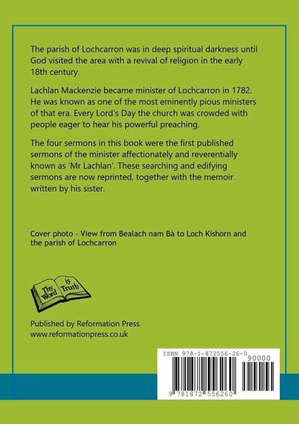 The parish of Lochcarron was in deep spiritual darkness until God visited the area with a revival of religion in the early 18th century. Lachlan Mackenzie became minister of Lochcarron in 1782. He was known as one of the most eminently pious ministers of that era. Every Lord's Day the church was crowded with people eager to hear his powerful preaching. The four searching and edifying sermons in this book are the first published sermons of the minister affectionately and reverentially known as 'Mr Lachlan'. The book also contains a poem by Lachlan MacKenzie and a memoir written by his sister.