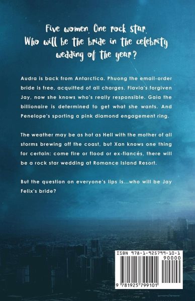 Five women. One rock star. Who will be the bride in the celebrity wedding of the year? Audra is back from Antarctica. Phuong the email-order bride is free, acquitted of all charges. Flavia's forgiven Jay, now she knows who's really responsible. Gaia the billionaire is determined to get what she wants. And Penelope's sporting a pink diamond engagement ring. The weather may be as hot as Hell with the mother of all storms brewing off the coast, but Xan knows one thing for certain: come fire or flood or ex-fiancés, there will be a rock star wedding at Romance Island Resort. But the question on everyone's lips is...who will be Jay Felix's bride?