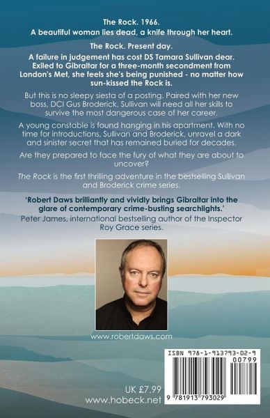 The Rock. 1966. A beautiful woman lies dead, a knife through her heart. The Rock. Present day. A failure in judgement has cost DS Tamara Sullivan dear. Exiled to Gibraltar for a three-month secondment from London's Met, she feels she's being punished - no matter how sun-kissed the Rock is. But this is no sleepy siesta of a posting. Paired with her new boss, DCI Gus Broderick, Sullivan will need all her skills to survive the most dangerous case of her career. A young constable is found hanging in his apartment. With no time for introductions, Sullivan and Broderick, unravel a dark and sinister secret that has remained buried for decades. Are they prepared to face the fury of what they are about to uncover? The Rock is the first thrilling adventure in the Sullivan and Broderick crime series.