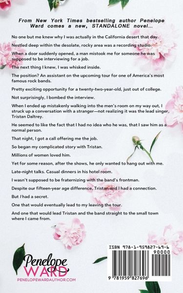 From New York Times bestselling author Penelope Ward comes a new, STANDALONE novel... No one but me knew why I was actually in the California desert that day. Nestled deep within the desolate, rocky area was a recording studio. When a door suddenly opened, a man mistook me for someone he was supposed to be interviewing for a job. The next thing I knew, I was whisked inside. The position? An assistant on the upcoming tour for one of America's most famous rock bands. Pretty exciting opportunity for a twenty-two-year-old, just out of college. Not surprisingly, I bombed the interview. When I ended up mistakenly walking into the men's room on my way out, I struck up a conversation with a stranger-not realizing it was the lead singer, Tristan Daltrey. He seemed to like the fact that I had no idea who he was, that I saw him as a normal person. That night, I got a call offering me the job. So began my complicated story with Tristan. Millions of women loved him. Yet for some reason, after the shows, he only wanted to hang out with me. Late-night talks. Casual dinners in his hotel room. I wasn't supposed to be fraternizing with the band's frontman. Despite our fifteen-year age difference, Tristan and I had a connection. But I had a secret. One that would eventually lead to my leaving the tour. And one that would lead Tristan and the band straight to the small town where I came from.