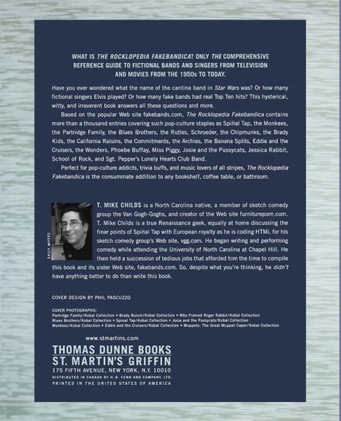 Have you ever wondered what the name of the cantina band in Star Wars was? Or how many fictional singers Elvis played? Or how many fake bands had real Top Ten hits? This hysterical, witty, and irreverent book answers all these questions and more. Based on the popular Web site fakebands.com, The Rocklopedia Fakebandica contains almost 1,000 entries covering such pop-culture staples as Spinal Tap, the Monkees, the Partridge Family, the Blues Brothers, the Rutles, Schroeder, the Chipmunks, the Brady Kids, the California Raisins, the Commitments, the Archies, the Banana Splits, Eddie and the Cruisers, the Wonders, Phoebe Buffay, Miss Piggy, Josie and the Pussycats, Jessica Rabbit, School of Rock, and Sgt. Pepper's Lonely Hearts Club Band. Perfect for pop-culture addicts, trivia buffs, and music lovers of all stripes, The Rocklopedia Fakebandica is the consummate addition to any bookshelf, coffee table, or bathroom.
