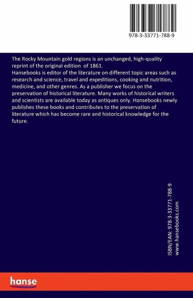 The Rocky Mountain gold regions is an unchanged, high-quality reprint of the original edition of 1861.