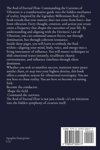 The Rod of Eternal Flow: Commanding the Currents of Vibration is a transformative guide into the hidden mechanics of reality. Inspired by the legendary Millennium Rod, this book reveals that true mastery does not come from force-but from vibration. Every thought, emotion, and action you create emits a frequency that shapes the outcomes of your life. By understanding and aligning with the Hermetic Law of Vibration, you can command unseen forces, not through domination, but through coherent resonance. Inside these pages, you will learn to embody the Rod within-aligning your mind, body, voice, and energy into a living instrument of influence. You will master techniques to shift emotional states instantly, recalibrate chaotic environments, and influence timelines through silent dominion. Whether you seek to manifest success, maintain inner peace amidst chaos, or step into your highest destiny, this book offers a complete system for vibrational sovereignty. You are not here to chase reality. You are here to become its tuning fork. Become the conductor. Shape the field. Command the currents. The Rod of Eternal Flow is not just a book-it's an initiation into the hidden symphony of creation itself.