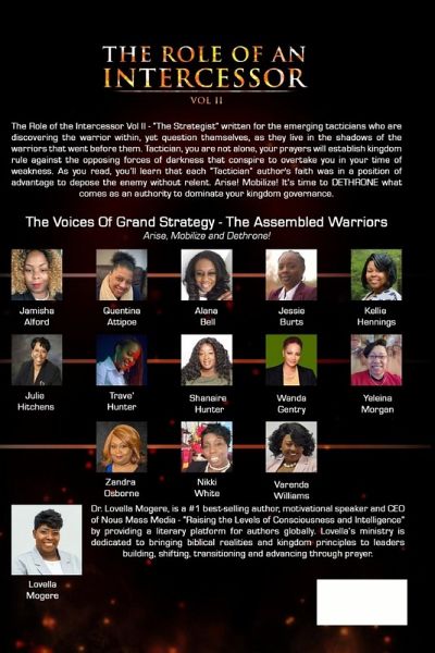 The Role of the Intercessor Vol II - "The Strategist" written for the emerging tacticians who are discovering the warrior within, yet question themselves, as they live in the shadows of the warriors that went before them. As you read, you'll learn that each "Tactician" author's faith was in a position of advantage to depose the enemy without relent. To learn more purchase your copy today!