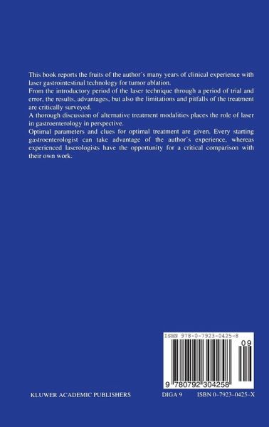 It is easy to make anecdotal claims for the efficacy of new forms of treatment based on the short term results in a small number of patients. Many authors have done this for endoscopic laser therapy in the gastrointestinal tract. It is very much more difficult to carry out a comprehensive assessment of the short and long term effects of new techniques and to compare these with the results of alternative treatments for the same diseases. This book, from one of the world's leading departments of gastroenterology, describes and analyses the largest series of patients yet reported from one centre treated endoscopically with the NdYAG laser for gastrointestinal disease. The follow up extends over 8 years and the results are impressive. Some of the early claims for laser therapy have been validated, others have not, but the real value of the book is that we now have a large amount of well organised data on which to judge the merits of laser therapy. Medical laser techniques are in their infancy and the potential for future develop ment is enormous, but ideas on current applications have been consolidated and that is essential before the next concepts evolve. This book has taught us how to walk. The world is now ready to learn to run! S. G. Bown, Director National Medical Laser Centre London Contents INTRODUCTION 3 Introduction and purpose of the study 5 1 General aspects of laser 6 1. 1.