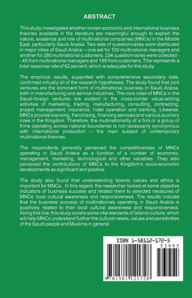 This study investigated whether known economic and international business theories available in the literature are meaningful enough to explain the nature, existence and role of multinational companies (MNCs) in the Middle East, particularly Saudi Arabia. Two sets of questionnaires were distributed in major cities of Saudi Arabia -- one set for 100 multinational managers and another for 280 multinational customers. 234 questionnaires were collected -- 45 from multinational managers and 189 from customers. This represents a total response rate of 62 percent, which is adequate for this study. The empirical results, supported with comprehensive secondary data, confirmed virtually all of the research hypotheses. The study found that joint ventures are the dominant form of multinational business in Saudi Arabia, both in manufacturing and service industries. The core roles of MNCs in the Saudi-foreign ventures are evident in the cross-border value-adding activities of marketing, trading, manufacturing, consulting, contracting, project management, insurance, hotel operation and banking. The results indicate that the business success of multinationals operating in Saudi Arabia is positively related to their local cultural awareness and responsiveness. Along this line, this study covers some vital elements of Islamic culture, which will help MNCs understand further the cultural needs, values and sensitivities of the Saudi people and Muslims in general.