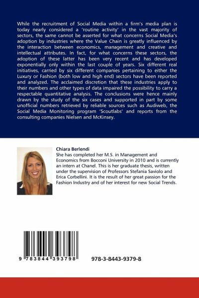 While the recruitment of Social Media within a firm's media plan is today nearly considered a routine activity' in the vast majority of sectors, the same cannot be asserted for what concerns Social Media's adoption by industries where the Value Chain is greatly influenced by the interaction between economics, management and creative and intellectual attributes. In fact, for what concerns these sectors, the adoption of these latter has been very recent and has developed exponentially only within the last couple of years. Six different real initiatives, carried by six different companies pertaining to either the Luxury or Fashion (both low and high end) sectors have been reported and analyzed. The acclaimed discretion that these industries apply to their numbers and other types of data impaired the possibility to carry a respectable quantitative analysis. The conclusions were hence mainly drawn by the study of the six cases and supported in part by some unofficial numbers retrievedby reliable sources such as Audiweb, the Social Media Monitoring program Scoutlabs' and reports from the consulting companies Nielsen and McKinsey.
