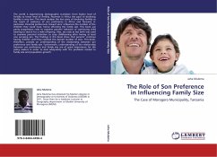 The world is experiencing demographic transition from higher level of fertility to lower level of fertility. However in Africa the pace of declining fertility is very low. This book analyse the low pace of declining fertility as the result of existence of son preference in Africa and Tanzania in particular. Parental preferences toward sons influences the number of the children they could have, hence affecting the family size. This book use parity progression ratio to examine parents behavior of continuing child bearing to search for a male offspring. Also, sex ratio at last birth was used to examine parental intention to stop childbearing after having at least one surviving son. The findings in this book show that parents continue having children until they reached the desired number of sons. This book, therefore, provide an understanding of the relationship between son preference and family size. Furthermore, understanding of the relationship between son preference and family size are of great importance for the policy makers in order to deal adequately with the problems related to family size and population growth.