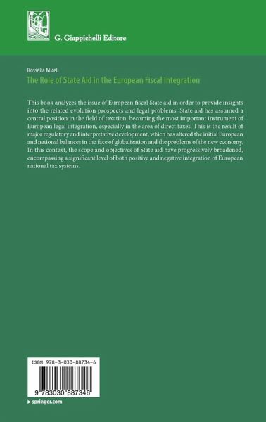 This book analyzes the issue of European fiscal State aid in order to provide insights into the related evolution prospects and legal problems. State aid has assumed a central position in the field of taxation, becoming the most important instrument of European legal integration, especially in the area of direct taxes. This is the result of major regulatory and interpretative development, which has altered the initial European and national balances in the face of globalization and the problems of the new economy. In this context, the scope and objectives of State aid have progressively broadened, encompassing a significant level of both positive and negative integration of European national tax systems.