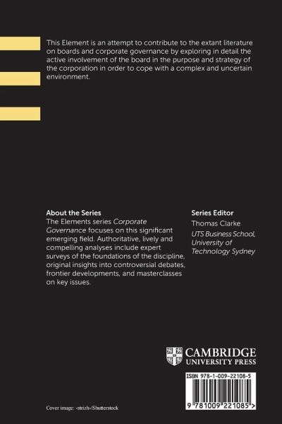 This Element is an attempt to contribute to the extant literature on boards and corporate governance by exploring in detail the active involvement of the board in the purpose and strategy of the corporation in order to cope with a complex and uncertain environment.