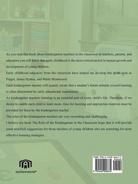 As you read this book about the role of Kindergarten teachers in the classroom, as teachers, parents, and educators you will know that early childhood is the most critical period in human growth and development of young children. Early childhood educators from the classroom have help me develop this book such as Piaget, James Hymes, and Marie Montessori. Each Kindergarten teacher will acutely aware that a student's future attitude toward learning is often determined by early educational experiences. As Kindergarten teachers learning is an essential part of every child's life. Therefore, if we desire to enable each child to learn more, time for learning and appropriate play material must be provided for them by the Kindergarten teacher. The roles of the Kindergarten teachers are very rewarding and challenging. I believe my book, The Role of the Kindergarten Teacher in the Classroom, hope that it will provide some practical suggestions for those teachers of young children who are searching for more effective learning strategies.