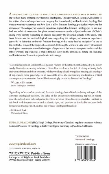 A strong critique of traditional atonement theology is found in the work of many contemporary feminist theologians. This approach, in large part, is related to the notion of women's experience--a category that is used widely within feminist theology. But what is women's experience and how does it affect feminist theology, particularly views on the atonement? The category of women's experience is pivotal to feminist theology, yet its use may lead to models of atonement that place excessive stress upon the subjective element of Christ's saving work thereby neglecting to address adequately the objective aspects of the cross. This book focuses on the methodological issues regarding the category of women's experience generally, its definition and use in feminist theology, with a more detailed analysis of its use in the context of feminist theologies of atonement. Utilizing the work of a wide variety of feminist theologians in conversation with theologies of experience, this work attempts to understand the role of women's experience as it shapes feminist views on the atonement, noting the strengths and limitations of feminist approaches to soteriology.