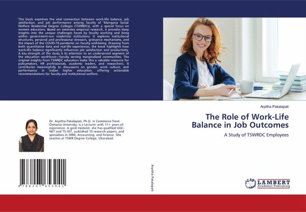 This book examines the vital connection between work-life balance, job satisfaction, and job performance among faculty of Telangana Social Welfare Residential Degree Colleges (TSWRDCs), with a special focus on women educators. Based on extensive empirical research, it provides deep insights into the unique challenges faced by faculty working and living within government-run residential institutions. It explores institutional structures, personal and professional stressors, grievance mechanisms, and the impact of the COVID-19 pandemic on faculty well-being. Drawing from both quantitative data and real-life experiences, the book highlights how work-life balance significantly influences job satisfaction and productivity. A key strength of the study is its attention to an underserved segment of the education workforce-faculty serving marginalized communities. The original insights from TSWRDC educators make this a valuable resource for policymakers, HR professionals, academic leaders, and researchers. It contributes meaningfully to discussions on gender, work culture, and performance in Indian higher education, offering actionable recommendations for faculty and institutional welfare.