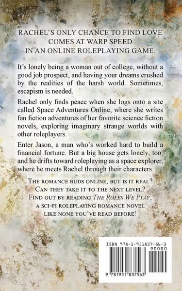 ¿Rachel's only chance to find love comes at warp speed in an online roleplaying game. It's lonely being a woman out of college, without a good job prospect, and having your dreams crushed by the realities of the harsh world. Sometimes, escapism is needed. Rachel only gets peace when she logs onto a site called Space Adventures Online, where she writes fan fiction adventures of her favorite science fiction novels, exploring imaginary strange worlds with other roleplayers. Enter Jason, a man who's worked hard to build a financial fortune. But a big house gets lonely, too, and he drifts toward roleplaying as a space explorer, where he meets Rachel through their characters. The romance buds online, but is it real? Can they take it to the next level? Find out by reading The Roles We Play, a sci-fi roleplaying romance novel like none you've read before!