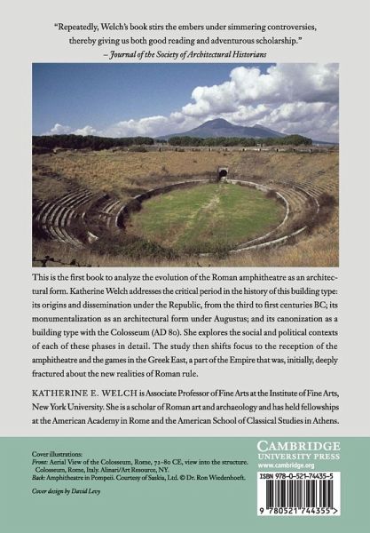 This is the first book to analyze the evolution of the Roman amphitheatre as an architectural form. Katherine Welch addresses the critical period in the history of this building type: its origins and dissemination under the Republic, from the third to first centuries BC; its monumentalization as an architectural form under Augustus; and its canonization as a building type with the Colosseum (AD 80). She explores the social and political contexts of each of these phases in detail. The study then shifts focus to the reception of the amphitheatre and the games in the Greek East, a part of the Empire that was, initially, deeply fractured about the new realities of Roman rule.