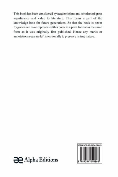 This book has been considered by academicians and scholars of great significance and value to literature. This forms a part of the knowledge base for future generations. So that the book is never forgotten we have represented this book in a print format as the same form as it was originally first published. Hence any marks or annotations seen are left intentionally to preserve its true nature.