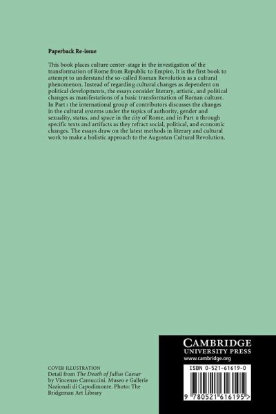 This book places culture centre-stage in the investigation of the transformation of Rome from Republic to Empire. It is the first book to attempt to understand the so-called Roman Revolution as a cultural phenomenon. Instead of regarding cultural changes as dependent on political developments, the essays consider literary, artistic, and political changes as manifestations of a basic transformation of Roman culture. In Part I the international group of contributors discusses the changes in the cultural systems under the topics of authority, gender and sexuality, status and space in the city of Rome, and in Part II through specific texts and artifacts as they refract social, political, and economic changes. The essays draw on the latest methods in literary and cultural work to present a holistic approach to the Augustan Cultural Revolution.