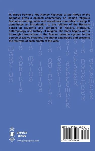 W. Warde Fowler's The Roman Festivals of the Period of the Republic gives a detailed commentary on Roman religious festivals covering public and sometimes non-public worship. It constitutes an introduction to the religion of the Romans aimed at students and scholars of history, literature, anthropology and history of religion. The book begins with a thorough introduction on the Roman calendar system. In the course of twelve chapters, the author catalogues and presents the festivals of each month of the year.