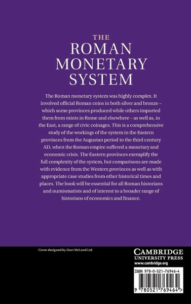 The Roman monetary system was highly complex. It involved official Roman coins in both silver and bronze, which some provinces produced while others imported them from mints in Rome and elsewhere, as well as, in the East, a range of civic coinages. This is a comprehensive study of the workings of the system in the Eastern provinces from the Augustan period to the third century AD, when the Roman Empire suffered a monetary and economic crisis. The Eastern provinces exemplify the full complexity of the system, but comparisons are made with evidence from the Western provinces as well as with appropriate case studies from other historical times and places. The book will be essential for all Roman historians and numismatists and of interest to a broader range of historians of economics and finance.