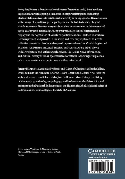 By combining textual evidence, comparative historical material, and contemporary urban theory with architectural and art historical analysis, this book charts the street's key role in the social and political lives of Romans and restores its rightful place as the primary venue for social performance in the ancient world.
