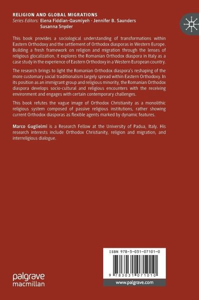 Marco Guglielmi s Romanian Orthodox Diaspora in Italy provides a sociological survey of Eastern Orthodoxy in Western Europe, offering a valuable contribution to understanding the Romanian Orthodox community in Italy. ... The thorough and meticulous nature of the research also provides an insightful and timely evaluation of the Romanian Orthodox Church, which is essential as the Church continues to transform and adapt to new pastoral challenges. (Cristian Sonea, Journal of Orthodox Christian Studies, Vol. 7 (1-2), 2024)