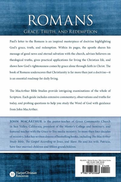 John MacArthur takes readers through the book of Romans, exploring how righteousness comes by Godâ s grace alone, the truth that God justifies condemned sinners, and the promise that faith in Christ alone brings redemption. This study can be used for personal reflection or for use in a small-group setting.