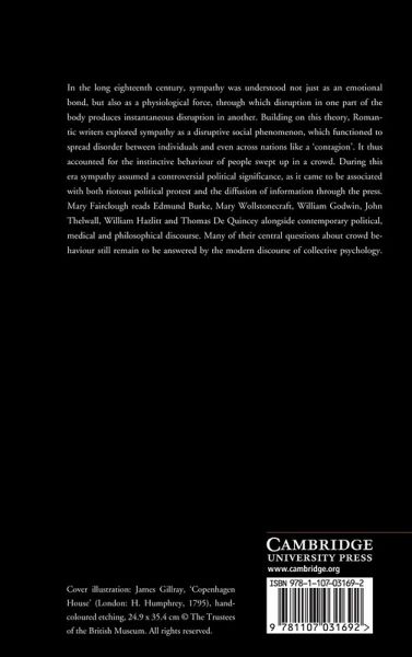 In the long eighteenth century, sympathy was understood not just as an emotional bond, but also as a physiological force, through which disruption in one part of the body produces instantaneous disruption in another. Building on this theory, Romantic writers explored sympathy as a disruptive social phenomenon, which functioned to spread disorder between individuals and even across nations like a 'contagion'. It thus accounted for the instinctive behaviour of people swept up in a crowd. During this era sympathy assumed a controversial political significance, as it came to be associated with both riotous political protest and the diffusion of information through the press. Mary Fairclough reads Edmund Burke, Mary Wollstonecraft, William Godwin, John Thelwall, William Hazlitt and Thomas De Quincey alongside contemporary political, medical and philosophical discourse. Many of their central questions about crowd behaviour still remain to be answered by the modern discourse of collective psychology.