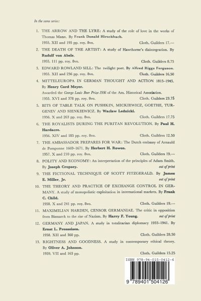 In this age of specialism philosophers, like other specialists, tend to take in each other's washing. Here, perhaps imprudently, I attempt to break out of this pattern. Though I am by profes sion a philosopher, I am addressing primarily, not other philo sophers, but cultural anthropologists, sociologists, historians of ideas, and literary and art critics. Thus, while there are chapters in this book on metaphysics and political theory, I do not ask, "Is the doctrine in question true?" - which is the kind of ques tion a philosopher might be expected to raise. Instead I ask, "What can we learn from this doctrine about the personality structure of the individual who framed it and about the charac teristic drives of the society in which he lived?" My reasons for asking and for trying to answer this kind of question, instead of the usual philosophical question, are as follows: Though the material products of culture and the overt behavior patterns of societies have long been objects ofscientific study, the most characteristic products of high cultures - artistic productions like poems and paintings and theoretical structures like metaphysical and scientific theory - have not as readily yielded to exact description and analysis. Not, of course, that there is not a very extensive discussion of these matters. But most of it is carried on in terms that are regrettably vague.