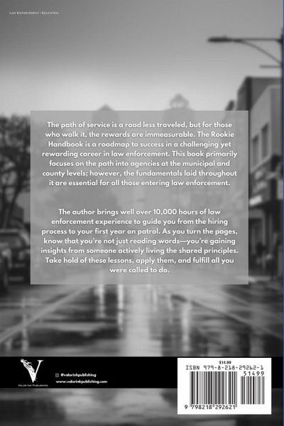 The path of service is a road less traveled, but for those who walk it, the rewards are immeasurable. The Rookie Handbook serves as your comprehensive guide to navigating a challenging yet fulfilling career in law enforcement. Whether you're just beginning to consider a future in policing or are already in the midst of the hiring process, this book offers invaluable insights and practical advice to help you succeed at the municipal and county levels and beyond. Drawing on over 10,000 hours of hands-on experience, the author provides a detailed roadmap that covers every crucial step, from the application process to your first year on patrol. This isn't just a book filled with theoretical knowledge; it's a collection of hard-earned lessons from someone who has lived and breathed the life of a law enforcement officer. As you turn the pages, you'll discover strategies for excelling in the police academy, navigating the complexities of field training, and building a reputation that will serve you throughout your career. You'll learn the importance of mental and physical preparation, the value of community engagement, and the critical role of integrity and perseverance in this demanding field. The Rookie Handbook is more than just a manual; it's a mentor in print, offering you the wisdom and encouragement you need to fulfill your calling with honor and excellence. Take these lessons to heart, apply them in your journey, and prepare to make a lasting impact in the communities you will serve.