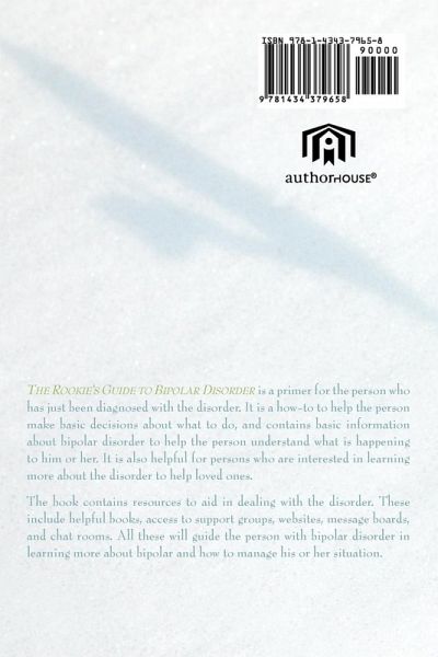 The Rookie's Guide to Bipolar Disorder is a primer for the person who has just been diagnosed with the disorder. It is a how-to to help the person make basic decisions about what to do, and contains basic information about bipolar disorder to help the person understand what is happening to him or her. It is also helpful for persons who are interested in learning more about the disorder to help loved ones. The book contains resources to aid in dealing with the disorder. These include helpful books, access to support groups, websites, message boards, and chat rooms. All these will guide the person with bipolar disorder in learning more about bipolar and how to manage his or her situation.