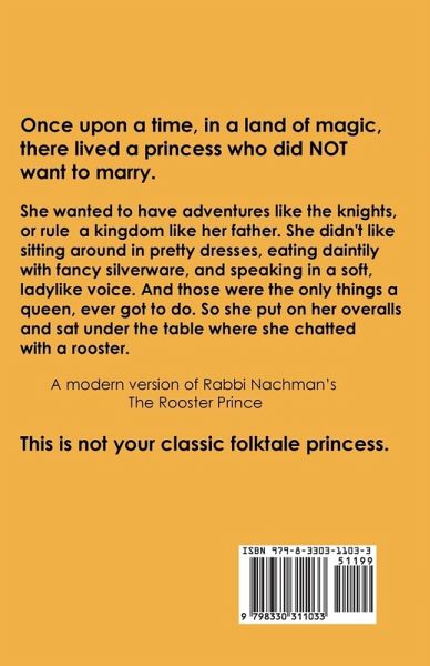 Once upon a time, in a land of magic, there lived a princess who did NOT want to marry. She wanted to have adventures like the knights, or rule a kingdom like her father. She didn't like sitting around in pretty dresses, eating daintily with fancy silverware, and speaking in a soft, ladylike voice. And those were the only things a queen, ever got to do. So she put on her overalls and sat under the table where she chatted with a rooster, who gave her new ideas about how to think about herself and her future. This is not your classic folktale princess.