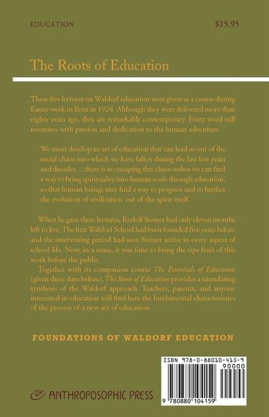 We must develop an art of education that will lead us out of our present social chaos. By bringing spirituality into human souls through education, humanity can find a way, through the spirit itself, to further the evolution of civilization. These lectures offer deep insight into the mystery of soul and spiritual forces in a child's development. They describe the metamorphoses of the child's being as these forces unfold, and explain how teaching should relate to these fundamental changes. Such an education prepares the child to become a citizen of both the earth and the spiritual world. Only…mehr