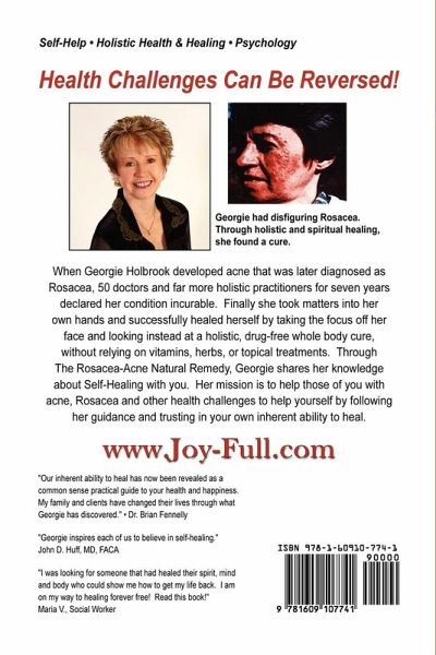 Currently, 45 million have Rosacea and far more have acne. Georgie Holbrook shares her own healing and 20-year experience of helping people around the world. She has recently discovered and reveals the inner components to healing overlooked by others who focus on the face, diet, vitamins, medical drugs or treatments. This self-help book includes how to 'experience' and trust your natural ability to heal. Also, a rare health evaluation is provided to find your own answers.