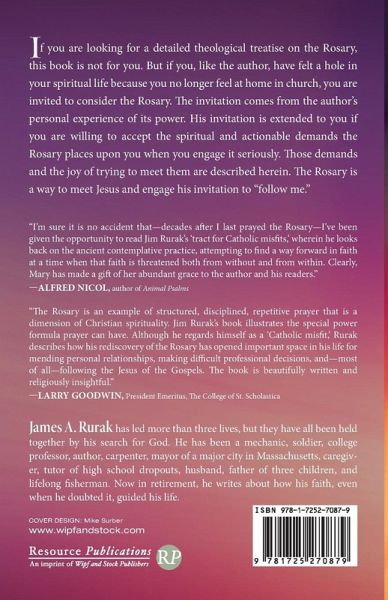 If you are looking for a detailed theological treatise on the Rosary, this book is not for you. But if you, like the author, have felt a hole in your spiritual life because you no longer feel at home in church, you are invited to consider the Rosary. The invitation comes from the author's personal experience of its power. His invitation is extended to you if you are willing to accept the spiritual and actionable demands the Rosary places upon you when you engage it seriously. Those demands and the joy of trying to meet them are described herein. The Rosary is a way to meet Jesus and engage his invitation to ""follow me.""