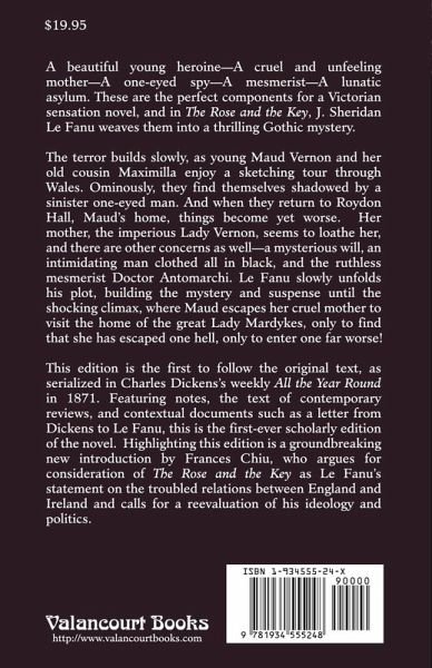A beautiful young heroine-A cruel and unfeeling mother-A one-eyed spy-A mesmerist-A lunatic asylum. These are the perfect components for a Victorian sensation novel, and in The Rose and the Key, J. Sheridan Le Fanu weaves them into a thrilling Gothic mystery. The terror builds slowly, as young Maud Vernon and her old cousin Maximilla enjoy a sketching tour through Wales. Ominously, they find themselves shadowed by a sinister one-eyed man. And when they return to Roydon Hall, Maud's home, things become yet worse. Her mother, the imperious Lady Vernon, seems to loathe her, and there are other concerns as well-a mysterious will, an intimidating man clothed all in black, and the satanic mesmerist Doctor Antomarchi. Le Fanu slowly unfolds his plot, building the mystery and suspence until the shocking climax, where Maud escapes her cruel mother to visit the home of the great Lady Mardykes, only to find that she has escaped one hell, only to enter one far worse! This edition is the first to follow the original text, as serialized in Charles Dickens's weekly All the Year Round in 1871. Featuring notes, the text of contemporary reviews, and contextual documents such as a letter from Dickens to Le Fanu, this is the first-ever scholarly edition of the novel. Highlighting this edition is a groundbreaking new introduction by Frances Chiu, which argues for consideration of The Rose and the Key as Le Fanu's statement on the troubled relations between England and Ireland and calls for a reevaluation of his ideology and politics.