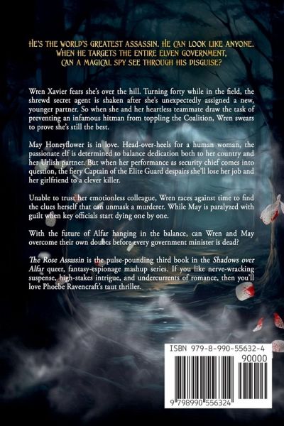 He's the world's greatest assassin. He can look like anyone. When he targets the entire elven government, can a magical spy see through his disguise? Wren Xavier fears she's over the hill. Turning forty while in the field, the shrewd secret agent is shaken after she's unexpectedly assigned a new younger partner. So when she and her heartless teammate draw the task of preventing an infamous hitman from toppling the Coalition, Wren swears to prove she's still the best. May Honeyflower is in love. Head-over-heels for a human woman, the passionate elf is determined to balance dedication both to her country and her Urlish partner. But when her performance as security chief comes into question, the fiery Captain of the Elite Guard despairs she'll lose her job and her girlfriend to a clever killer. Unable to trust her emotionless colleague, Wren races against time to find the clues herself that can unmask a murderer. While May is paralyzed with guilt when key officials start dying one by one. With the future of Alfar hanging in the balance, can Wren and May overcome their own doubts before every government minister is dead? The Rose Assassin is the pulse-pounding third book in the Shadows over Alfar queer, fantasy-espionage mashup series. If you like nerve-wracking suspense, high-stakes intrigue, and undercurrents of romance, then you'll love Phoebe Ravencraft's taut thriller.
