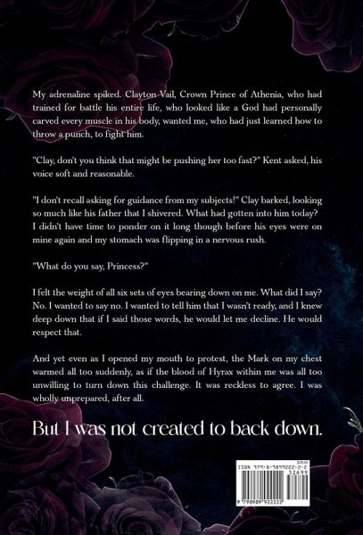 The Descendants of Hyrax, God of the Dead, died out long ago. At least, that's what the Mortal Realm had thought until Theadora Moore showed up on the steps of the Athenian Palace without any memories of her past life, magic in her veins, and a mark on her chest that brands her the last living Descendant of Hyrax. Desperate to use her to ensure peace in his kingdom, Prince Clayton Vail forces her to play a role she doesn't want at court. When mysterious attacks start happening at the castle, though, it becomes clear that not everyone is happy with the return of House Hyrax. If Thea wants to stay alive long enough to uncover the secrets of her past, she's going to need to master her powers, navigate complicated politics, and figure out who to trust. In a castle filled with the children of the Gods... that might be easier said than done. The House of Hyrax series is an action-packed slow-burn romance filled with magic and political intrigue, perfect for fans of From Blood and Ash and Red Queen.