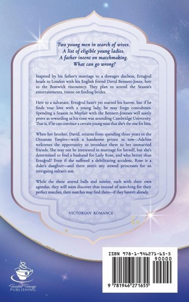 Two young men in search of wives. A list of eligible young ladies. A father intent on matchmaking. A daughter with no intention of marrying. What can go wrong? Inspired by his father's marriage to a dowager duchess, Ertürul heads to London with his English friend David Bennett-Jones, heir to the Bostwick viscountcy. They plan to attend the Season's entertainments, intent on finding brides. Heir to a sultanate, Ertürul hasn't yet started his harem, but if he finds true love with a young lady, he may forgo concubines. Spending a Season in Mayfair with the Bennett-Joneses will surely prove as rewarding as his time was attending Cambridge University. That is, if he can convince a certain young miss that she's the one for him. When her brother, David, returns from spending three years in the Ottoman Empire-with a handsome prince in tow-Adeline welcomes the opportunity to introduce them to her unmarried friends. She may not be interested in marriage for herself, but she's determined to find a husband for Lady Rose, and who better than Ertürul? Even if she suffered a debilitating accident, Rose is a duke's daughter-and there aren't any unwed princesses for an intriguing sultan's son. While the three attend balls and soirées, each with their own agendas, they will soon discover that instead of searching for their perfect matches, their matches may find them-if they haven't already.
