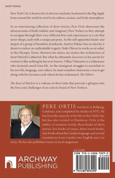 New York City is known for its diverse residents, beckoned to the Big Apple from around the world to revel in its culture, cuisine, and lively atmosphere. In an entertaining collection of short stories, Pere Ortis showcases the idiosyncrasies of both realistic and imaginary New Yorkers as they attempt to navigate through their very different lives and experiences in a city that never sleeps, each with a unique purpose. As the self-appointed leader and despot of a group of homeless drunkards, Audrey Palmer has no idea he is about to endure an unthinkable tragedy. Iñaki Olavarria works as an usher in the Olympic Tower. Between his duties, he studies the architecture of Saint Patrick's Cathedral. But what he ultimately discovers in his search for wisdom is like nothing he has ever known. Vilkas Valiusaitis is a Lithuanian who demands much from life. As the immigrant struggles to assimilate to his new life, language, and culture, he must somehow determine a way to get along with his German cook whom he has nicknamed, The Führer. The Rose of Harlem is a volume of short tales that provide a glimpse into the lives and challenges of an eclectic band of New Yorkers.