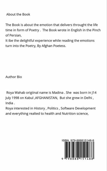 The Book is about the emotions that express through the life time in form of Poetry, the Poetry write in English with the Pinch of the Persian. It will be delightful experinece to read the emotions of the female Poetess that came in the form of the Persian. A classical Poetry collection that touch the readers heart,
