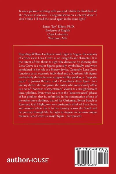 Regarding William Faulkner's novel, Light in August, the majority of critics view Lena Grove as an insignificant character. It is the intent of this thesis to right the discourse by showing that Lena Grove is a major figure: generally, symbolically, and when considered in her role as a literary device. Generally, Lena Grove functions as an eccentric individual and a Southern folk figure; symbolically she has become a pagan fertility goddess, an "opposite equal" to Joanna Burden, and a Persephone-Kore figure. As a literary device she comprises the entity who most closely offers us a set of…mehr