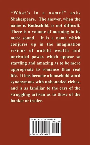 "What's in a name?" asks Shakespeare. The answer, when the name is Rothschild, is not difficult. There is a volume of meaning in its mere sound. It is a name which conjures up in the imagination visions of untold wealth and unrivaled power, which appear so startling and amazing as to be more appropriate to romance than real life. It has become a household word synonymous with unbounded riches, and is as familiar to the ears of the struggling artisan as to those of the banker or trader.