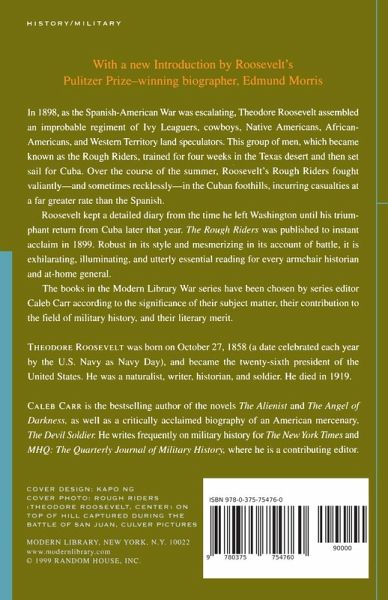 In 1898, as the Spanish-American War was escalating, Theodore Roosevelt assembled an improbable regiment of Ivy Leaguers, cowboys, Native Americans, African-Americans, and Western Territory land speculators. This group of men, which became known as the Rough Riders, trained for four weeks in the Texas desert and then set sail for Cuba. Over the course of the summer, Roosevelt's Rough Riders fought valiantly, and sometimes recklessly, in the Cuban foothills, incurring casualties at a far greater rate than the Spanish. Roosevelt kept a detailed diary from the time he left Washington until his triumphant return from Cuba later that year. The Rough Riders was published to instant acclaim in 1899. Robust in its style and mesmerizing in its account of battle, it is exhilarating, illuminating, and utterly essential reading for every armchair historian and at-home general. The books in the Modern Library War series have been chosen by series editor Caleb Carr according to the significance of their subject matter, their contribution to the field of military history, and their literary merit.
