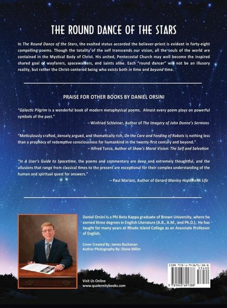 In The Round Dance of the Stars, the exalted status accorded the believer-priest is evident in forty-eight compelling poems. Though the totality of the self transcends our vision, all the souls of the world are contained in the Mystical Body of Christ. His united, Pentecostal Church may well become the inspired shared goal of wayfarers, spacewalkers, and saints alike. Each "round dancer" will not be an illusory reality, but rather the Christ-centered being who exists both in time and beyond time.