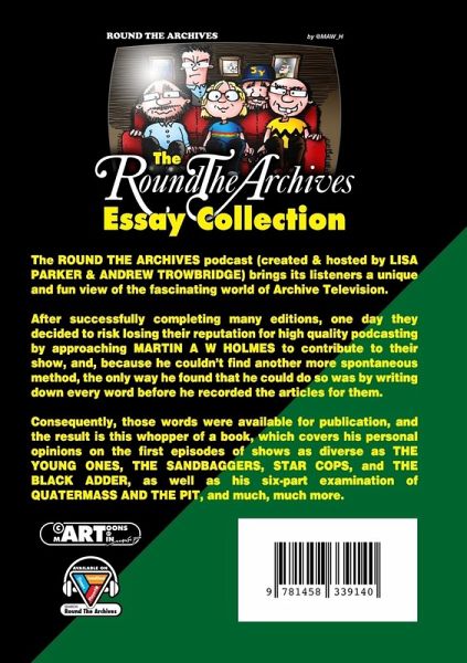 The ROUND THE ARCHIVES podcast (created & hosted by LISA PARKER & ANDREW TROWBRIDGE) brings its listeners a unique and fun view of the fascinating world of Archive Television. After successfully completing many editions, one day they decided to risk losing their reputation for high quality podcasting by approaching MARTIN A W HOLMES to contribute to their show, and, because he couldn't find another more spontaneous method, the only way he found that he could do so was by writing down every word before he recorded the articles for them. Consequently, those words were available for publication, and the result is this whopper of a book, which covers his personal opinions on the first episodes of shows as diverse as THE YOUNG ONES, THE SANDBAGGERS, STAR COPS, and THE BLACK ADDER, as well as his six-part examination of QUATERMASS AND THE PIT, and much, much more.