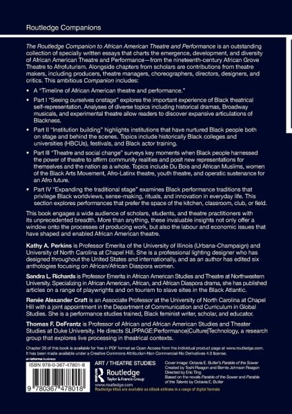 The Routledge Companion to African American Theatre and Performance is an outstanding collection of specially written essays that charts the emergence, development, and diversity of African American Theatre and Performance-from the nineteenth-century African Grove Theatre to Afrofuturism. Alongside chapters from scholars are contributions from theatre makers, including producers, theatre managers, choreographers, directors, designers, and critics. This ambitious Companion includes: