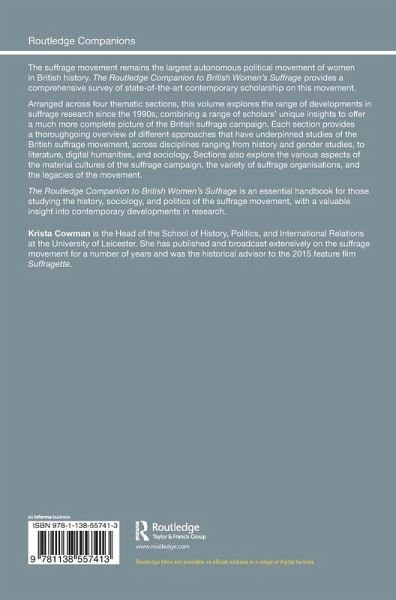 The Routledge Companion to British Women's Suffrage is an essential handbook for those studying the history, sociology, and politics of the suffrage movement, with a valuable insight into contemporary developments in research.