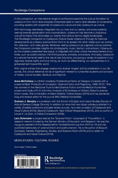 In this companion, an international range of contributors examine the cultural formation of cyberpunk from micro-level analyses of example texts to macro-level debates of movements, providing readers with snapshots of cyberpunk culture and also cyberpunk as culture. With technology seamlessly integrated into our lives and our selves, and social systems veering towards globalization and corporatization, cyberpunk has become a ubiquitous cultural formation that dominates our twenty-first century techno-digital landscapes. The Routledge Companion to Cyberpunk Culture traces cyberpunk through its historical developments as a literary science fiction form to its spread into other media such as comics, film, television, and video games. Moreover, seeing cyberpunk as a general cultural practice, the Companion provides insights into photography, music, fashion, and activism. Cyberpunk, as the chapters presented here argue, is integrated with other critical theoretical tenets of our times, such as posthumanism, the Anthropocene, animality, and empire. And lastly, cyberpunk is a vehicle that lends itself to the rise of new futurisms, occupying a variety of positions in our regionally diverse reality and thus linking, as much as differentiating, our perspectives on a globalized technoscientific world. With original entries that engage cyberpunk's diverse 'angles' and its proliferation in our life worlds, this critical reference will be of significant interest to humanities students and scholars of media, cultural studies, literature, and beyond.