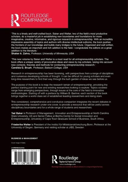 Research in entrepreneurship has been booming, with perspectives from a range of disciplines and numerous developing schools of thought. It can be difficult for young scholars and even long-time researchers to find their way through the lush garden of ideas we see before us. ¿ The purpose of this book is to map the research terrain of entrepreneurship, providing the perfect starting point for new and existing researchers looking to explore. Topics covered range from emerging perspective, through issues at the core of the field to innovative methodologies. Starting off with a preface by Bill Gartner, each section of the book brings together a world class set of established leading researchers and rising stars.¿ This considered, comprehensive and conclusive companion integrates the recent debates in entrepreneurship research under one cover, to provide a resource which will be useful across disciplinary boundaries and for a whole range of students and researchers.